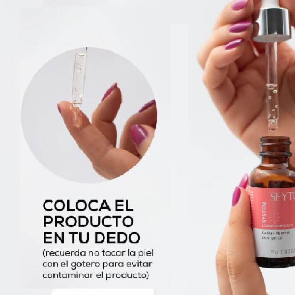 🌟El Ácido Mandélico al 7% y Ácido Tranexámico al 3% se enfocan en disminuir las manchas, mientras que el Extracto de Raíz de Mulberry 🌿 y Niacinamida al 4% iluminan y unifican el tono de la piel. Aplicado regularmente, Seytú reduce visiblemente las manchas y mejora la textura de la piel, dejándola radiante y uniforme. ✨💧🌸
